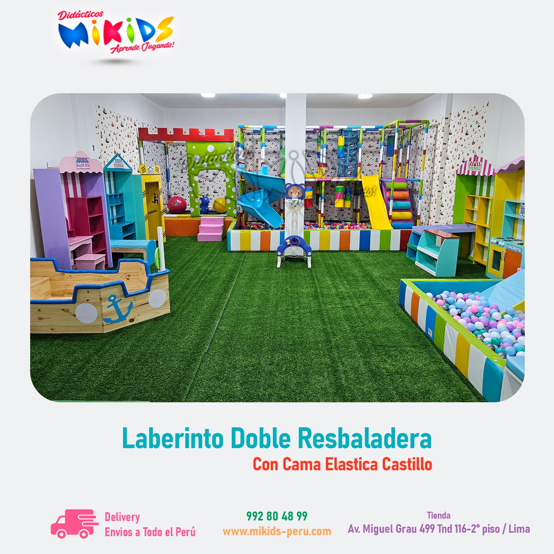 LABERINTO DOBLE RESBALADERA CON CAMA ELASTICA